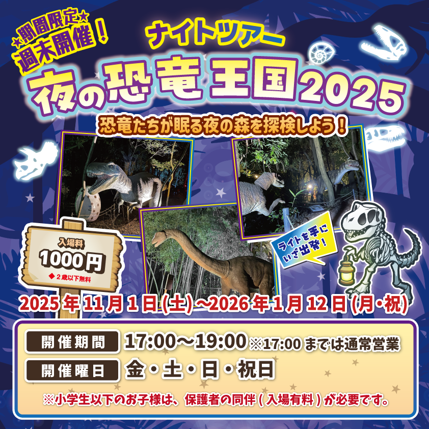 昼間も大人気の「ダイナソーアドベンチャーツアー」に、期間限定のナイトイベントが登場!