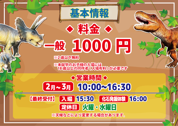 ※2/24~3/19まで 恐竜パークリニューアルの為休園とさせていただきます。